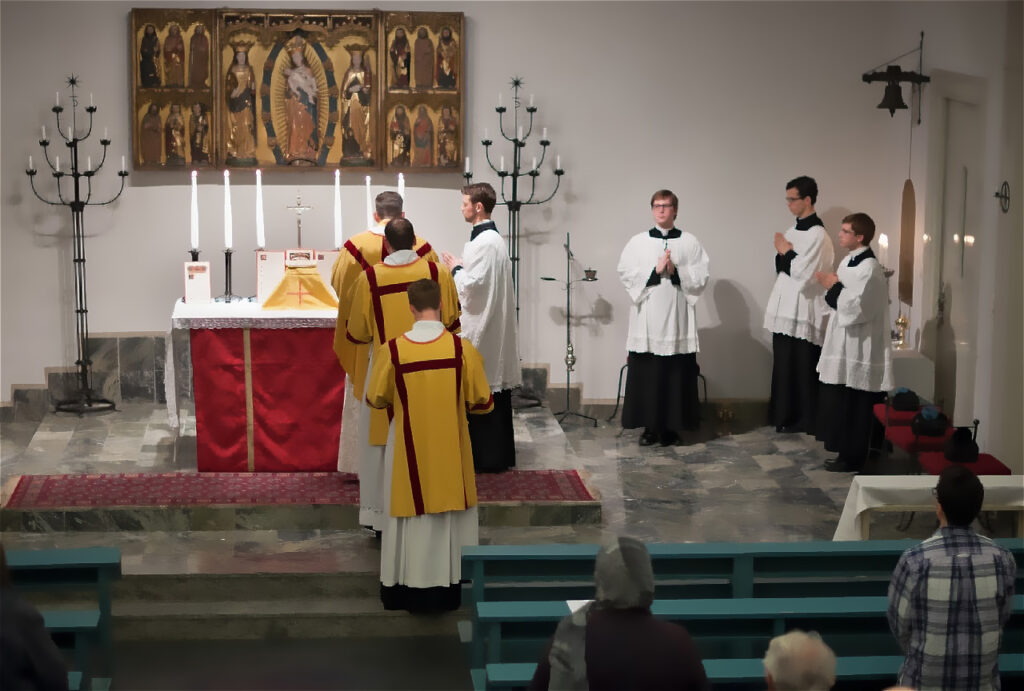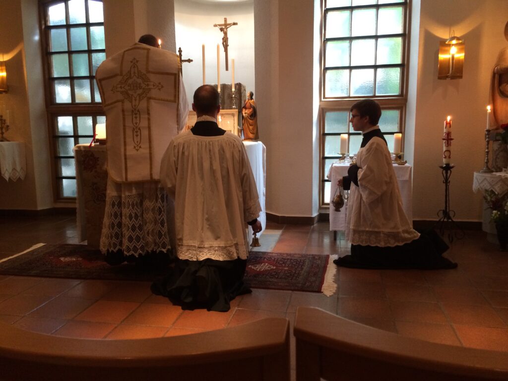 Kristus Konungens, den evige Översteprästens Institut firar detta år 20-årsjubileum för sin verksamhet i Stockholms Katolska stift! Verksamheten började bedrivas på regelbunden basis år 2005, även om sporadiska besök av institutets kaniker ägt rum från år 2000. De första åren firades den heliga mässan varannan månad, torsdag kväll och fredag morgon, i S:t Eriks katolska domkyrka i Stockholm vid Jesu Hjärta-altaret, samt även i Lund i S:t Tomas församlingskyrka. Från december 2010 ändrades besöksfrekvensen till första och sista söndagen i månaden, och i samband med detta flyttade verksamheten till Birgittakapellet i den katolska folkhögskolans lokaler på Björngårdsgatan 13 på Södermalm. Sjungna söndagsmässor med påföljande kyrkkaffe blev nu en etablerad vana. Söndagsmässan firades även i Lund. Från november 2011 upprättades ett kontrakt mellan Stockholms katolska stift och Kristus Konungens Institut, vilket innebar att kanik Marcus Künkel flyttade permanent till Stockholm, och dagliga mässor kunde börja firas. I Birgittakapellet förblev apostolatet till juni 2014, då folkhögskolans lokaler såldes. Flyttlasset gick då till Marie Bebådelses kyrka på Linnégatan 79 på Östermalm, där vi förblev till april 2015, varefter ett hastigt uppbrott förflyttade apostolatets nya plats till S:t Marouns kyrka i Sätra, där vi nu har varit i tio års tid.