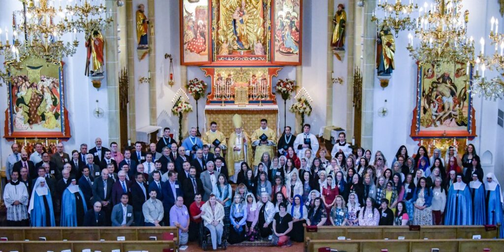 den “Nya Eva,” svarar med en trohet som gav oss frid i hennes Son. Symbolerna för Maria på korsets baksida påminner oss om att genom att efterlikna henne och vända oss till